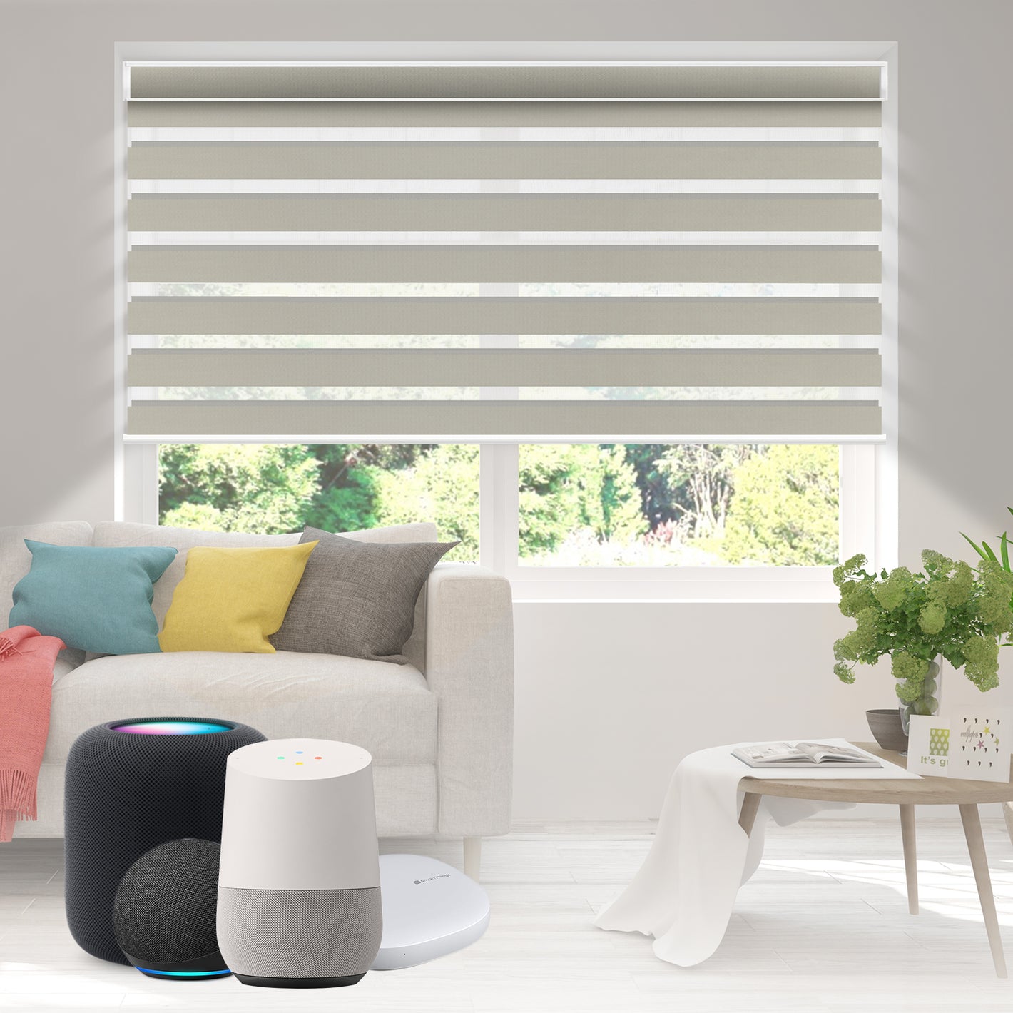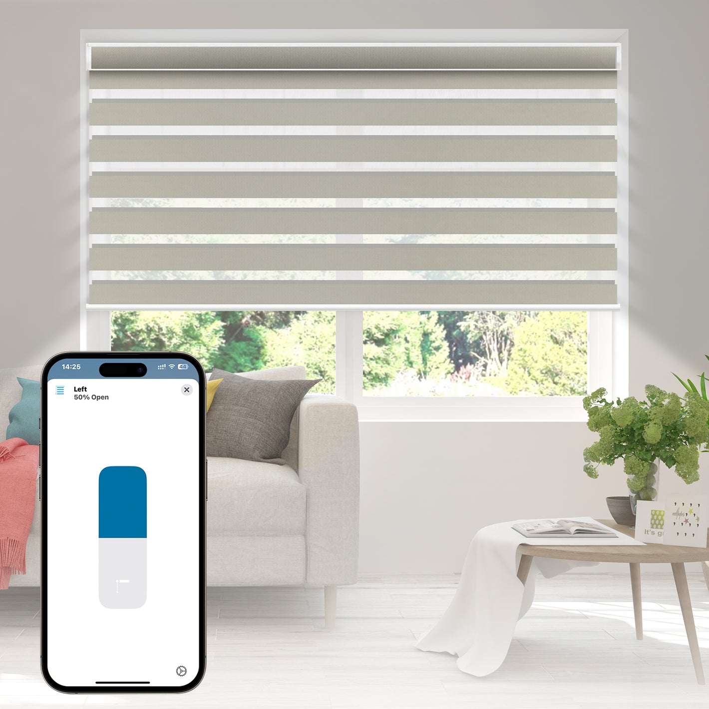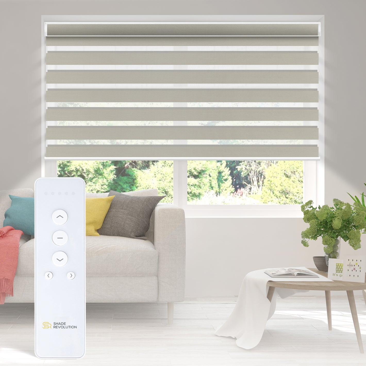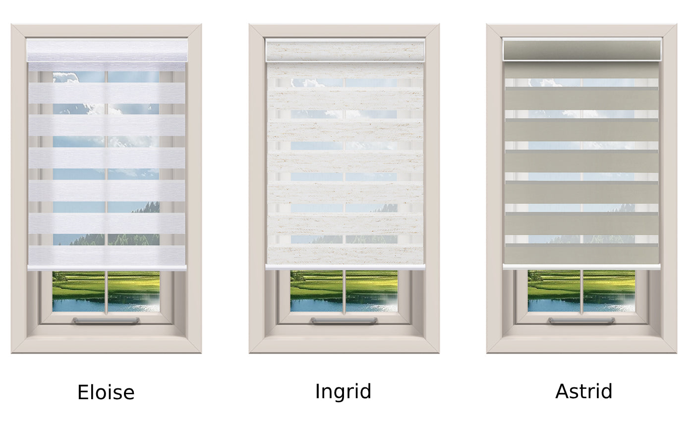 Zebra shades feature alternating sheer and opaque fabric bands, allowing for customizable light control and adjustable privacy. These stylish shades effortlessly transition from full privacy to gently filtered natural light with a simple adjustment. Available in a variety of contemporary colors and textures, zebra shades are perfect for adding a modern touch to any interior space.