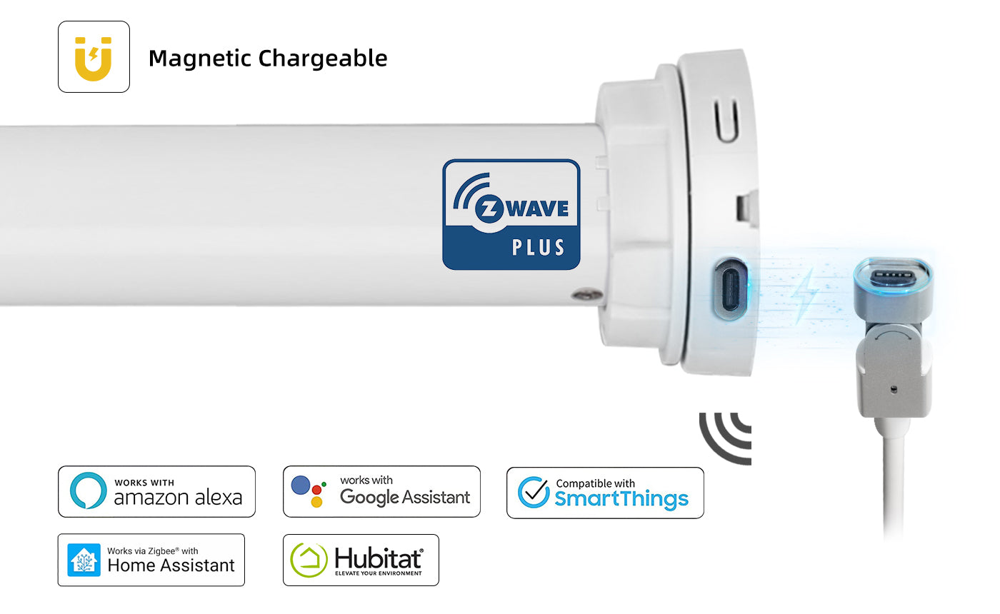 The motor is compatible with Bond, Samsung SmartThings, Home Assistant, Hubitat, and other Zigbee 3.0 hubs. It also directly connects to Amazon Alexa through specific devices, including Echo Plus 2nd Gen, Echo Show 2nd Gen, Echo Studio, Echo Show 10, and Echo 4th Gen. Control your shades remotely via the SmartThings app, or use voice commands with Google Home and Amazon Alexa for seamless integration and convenience.
